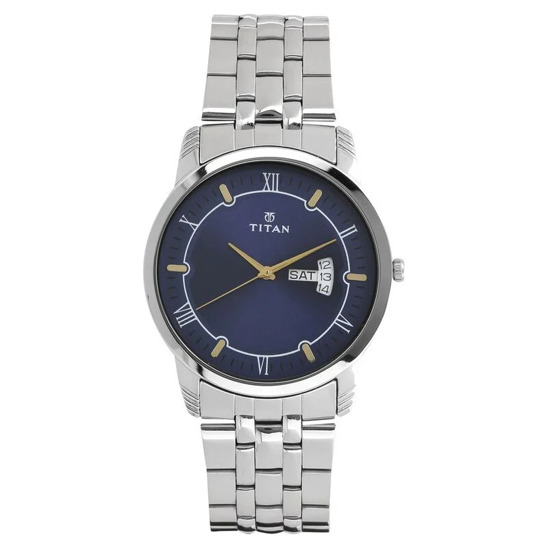 - Name: Titan Analog With Day And Date Blue Dial Stainless Steel Strap Watch For Men